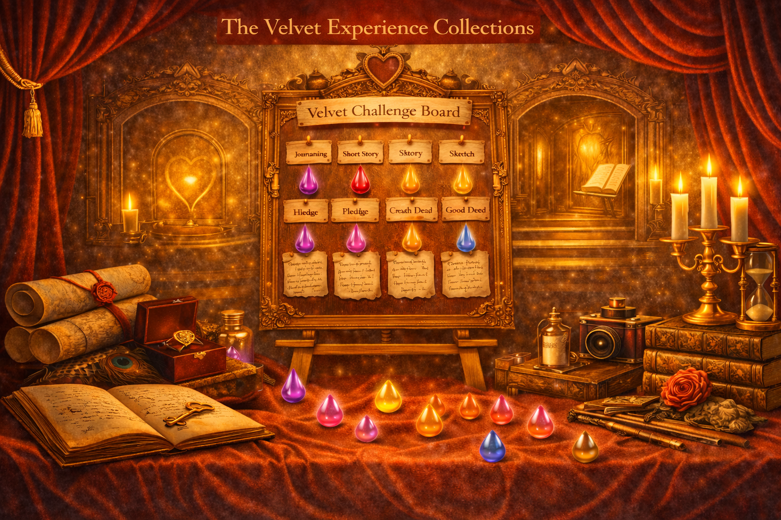 On the Velvet Challenge Board, you choose an Unbinding Act—a mission that proves intention and turns you from viewer into participant.