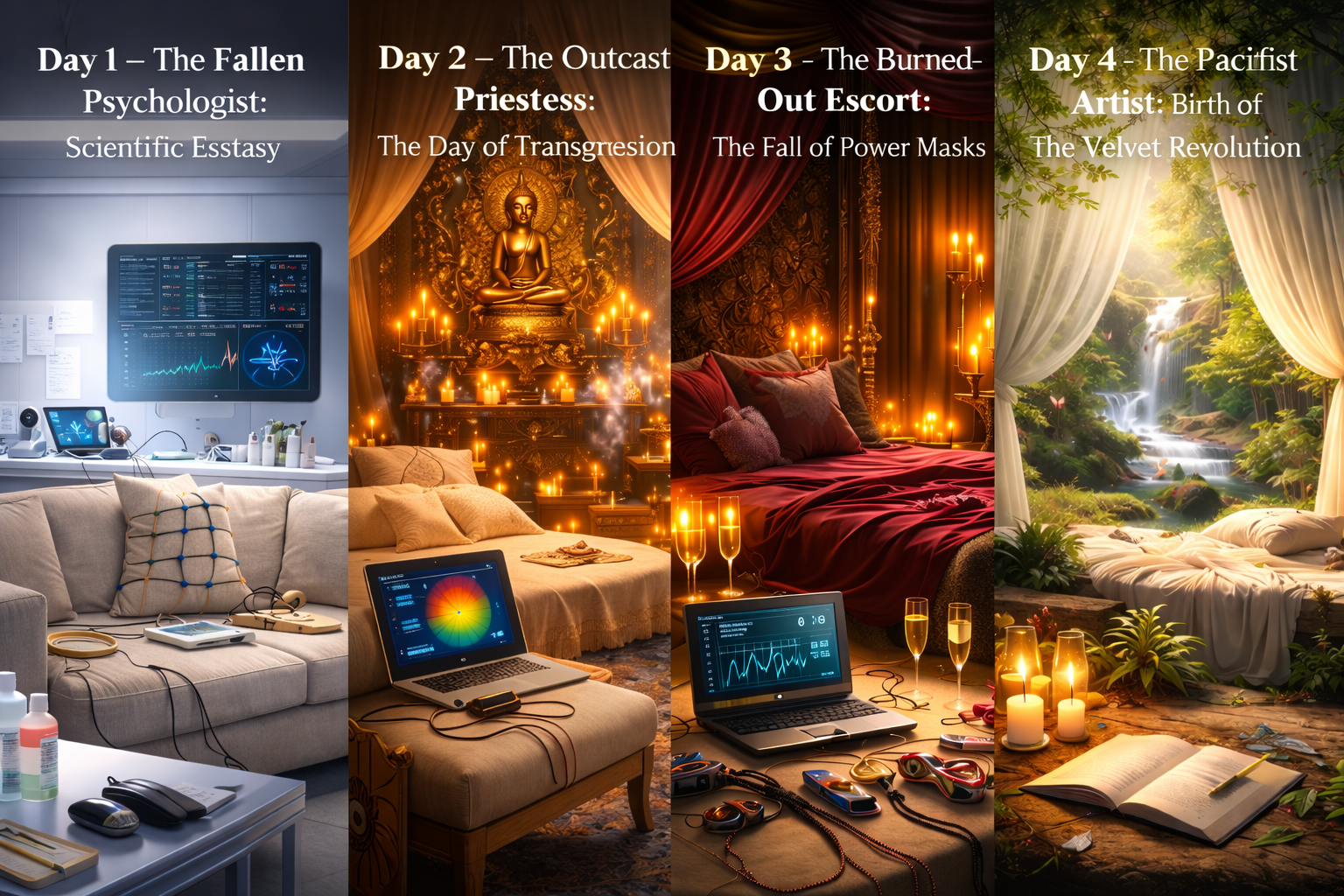 The record experiment unfolds across four consecutive days, each representing a distinct stage of transformation, with clearly defined symbolic meaning, environment, and operational framework.