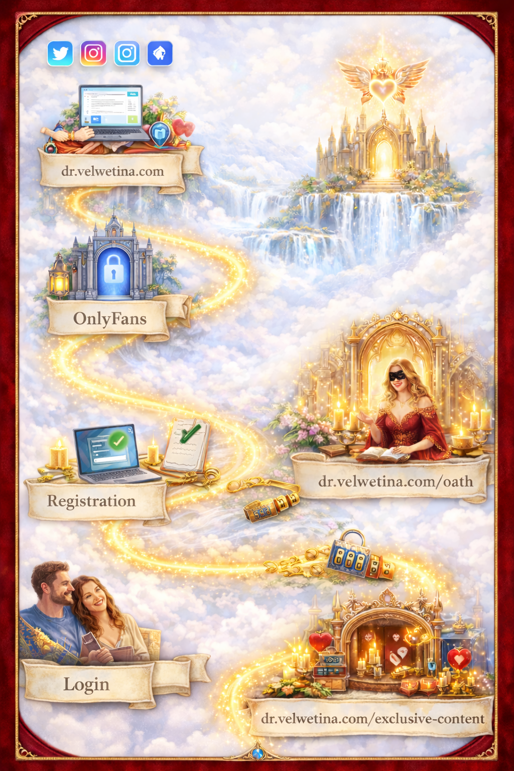 - The access to my OnlyFans account is simple and logical: https://onlyfans.com/dr.velwetina - but you can also reach my account by clicking on any picture here on the Sanctuary page :)